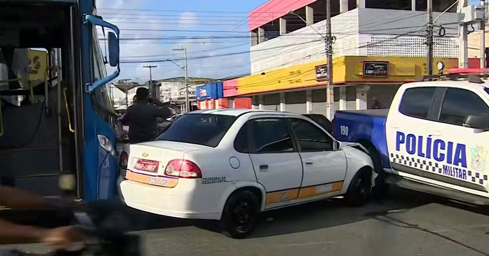 Uma batida envolvendo um táxi lotação, um ônibus e uma viatura da Polícia Militar ocorreu no cruzamento das avenidas Coelho e Campos e Pedro Calazans, no início da manhã desta sexta-feira (30). Duas pessoas ficaram levemente feridas.
