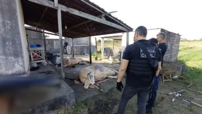 Sedundo a Secretaria de Segurança Pública, a atividade irregular funcionava em uma propriedade na região do Lagamar, área rural entre os municípios de Telha e Propriá. “No local, os policiais flagraram o abate clandestino, encontrando três vacas já abatidas, estendidas no chão de cimento, ao ar livre, sem nenhuma condição de higiene”, disse a delegada Aliete Melo Mendonça,