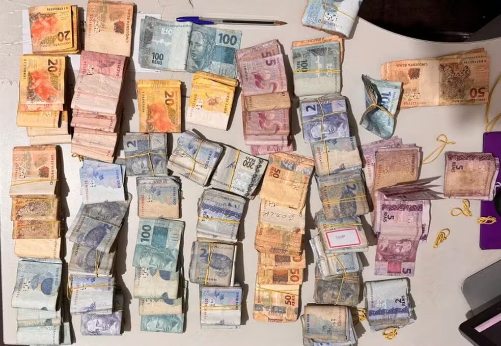 Além de dinheiro, celulares e relógios foram apreendidos 695 porções de crack, duas porções grandes de quase meio quilo de cocaína e crack de substância branca semelhante à cocaína