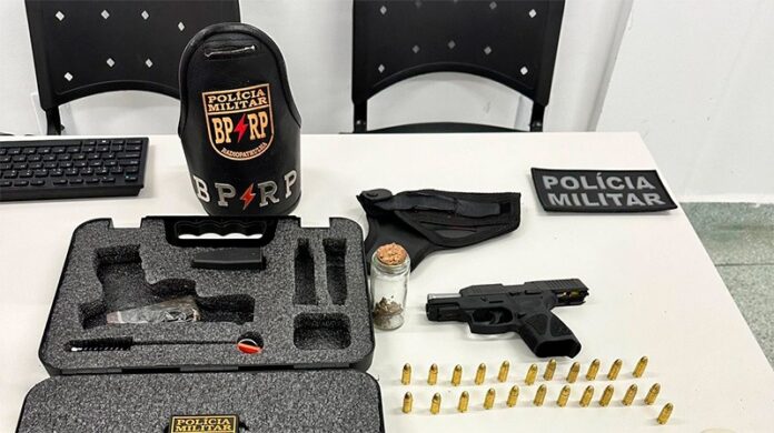 A Polícia Militar realizou uma prisão em flagrante por porte ilegal de arma de fogo, direção perigosa e posse de entorpecente no Bairro Japãozinho na última segunda-feira, 25.