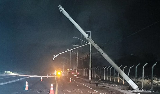 De acordo com informações do Batalhão de Polícia Rodoviária Estadual (BPRv), o caso foi registrado por volta das 2h30. No local, os policiais constataram que um veículo, de cor preta, colidiu contra um poste, provocando danos à estrutura.